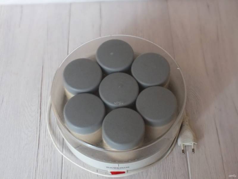 Заполненные баночки поставьте в йогуртницу, закройте крышками.