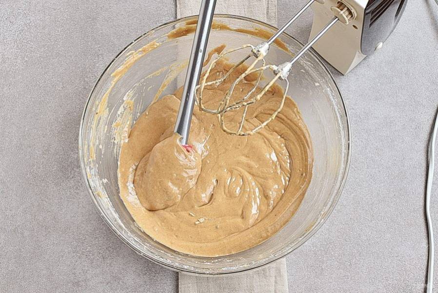 Перемешайте тесто на малых оборотах миксера, стараясь сделать это быстро. Соберите тесто с краев миски.