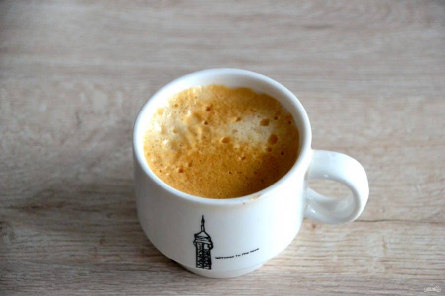 Сварите любым способом крепкий кофе, потребуется 115-120 мл. Кофейный жмых не выбрасывайте, по желанию его можно добавить в суфле 2-3 ч.ложки.