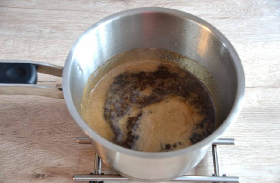 Нагрейте на среднем огне при помешивании агар-агар с кофе, после закипания варите 2-2,5 минуты до загустения, снимите с огня.