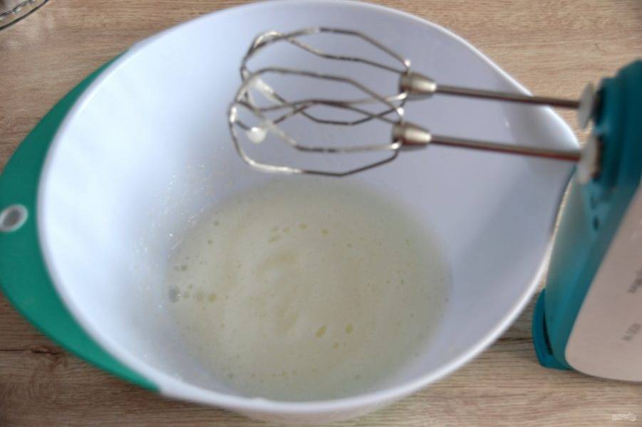 Взбейте до мягких пиков яичные белки с 1/2 щепоткой соли и 2-3 каплями лимонного сока.