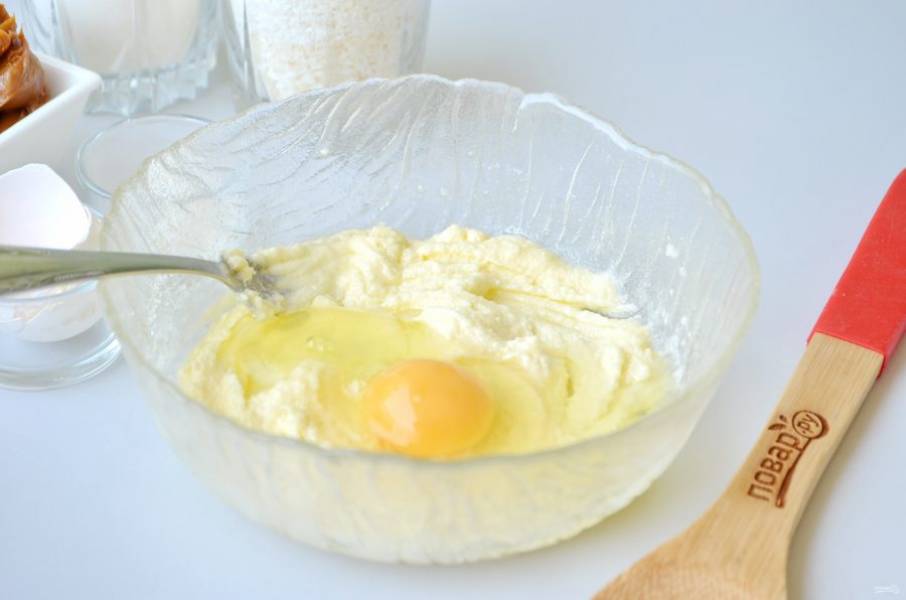 3. Вбейте яйцо, перемешайте, чтобы масса стала однородной.
