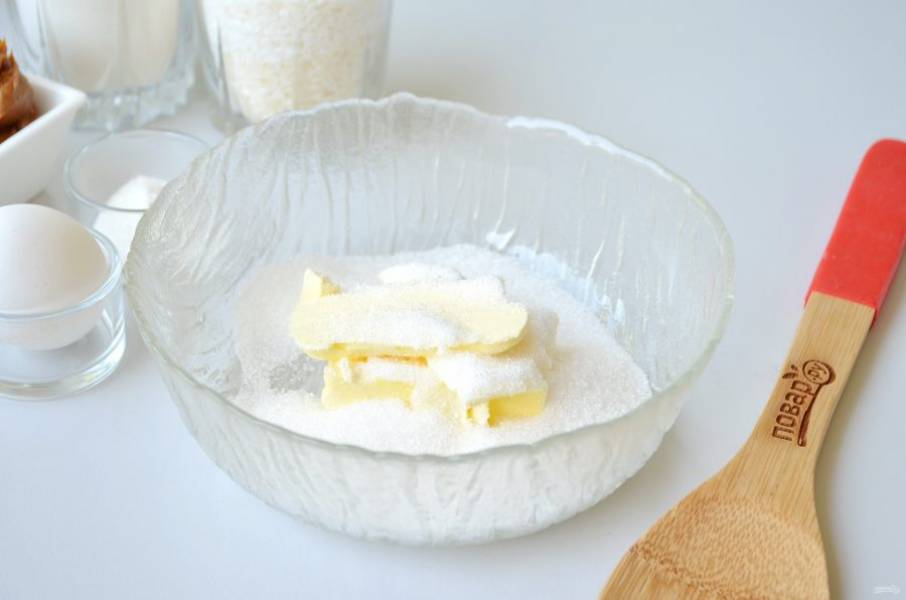 2. Сливочное масло (оно должно быть комнатной температуры) соедините с сахаром или пудрой. Вилочкой хорошо разотрите.