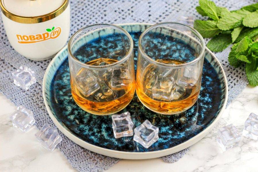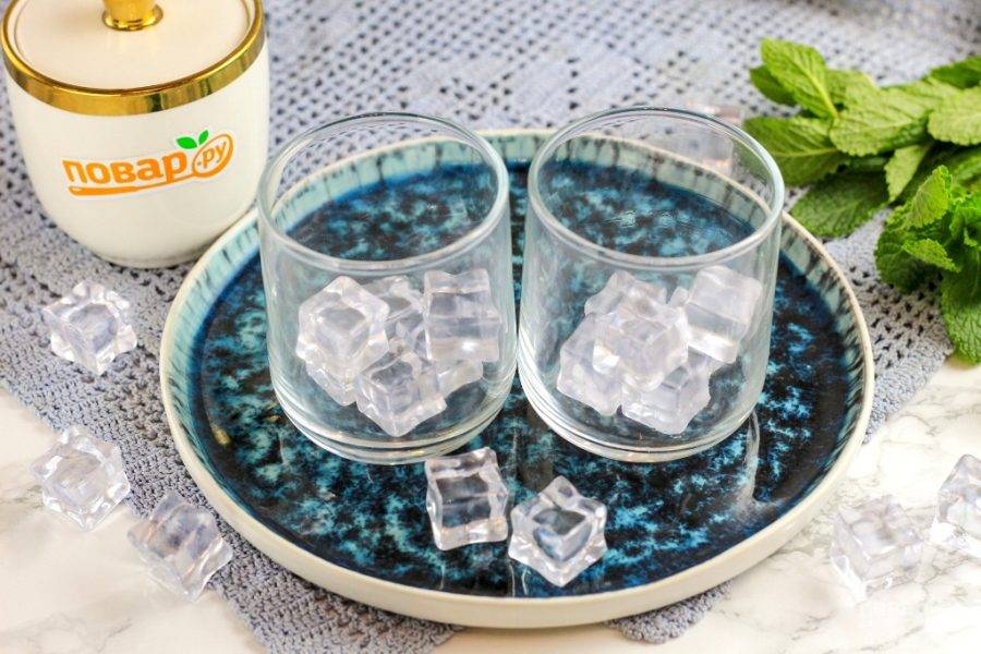 Выложите в стаканы лед: в каждый стакана по 5-6 кубиков в зависимости от размера льда.