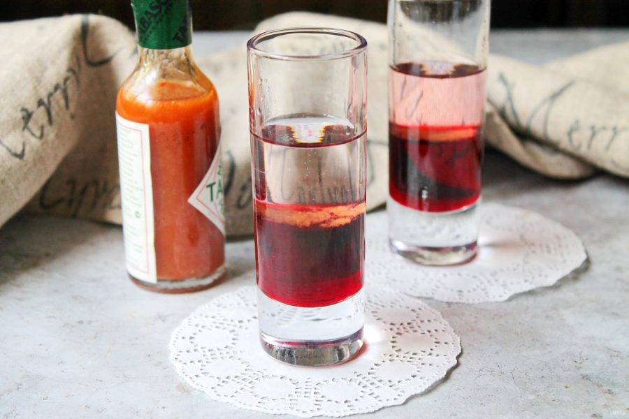 Если любите алкогольные напитки средней крепости, где смешаны несколько вкусов — этот шот для вас. В нем сочетается сладкий сироп, крепость водки и острота табаско. Берите рецепт на вооружение!