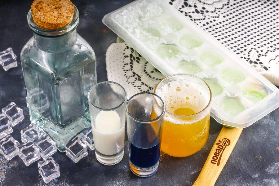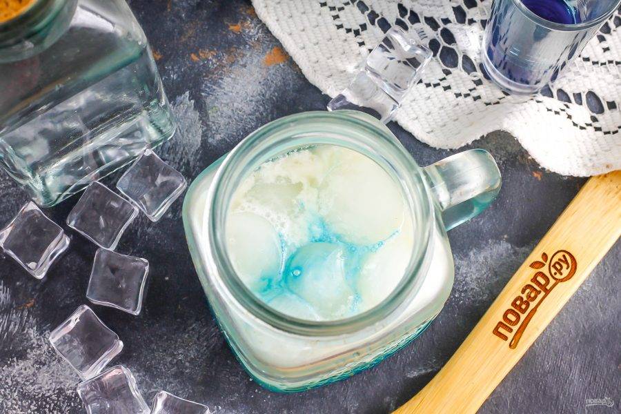Добавьте светлый ром и ликер "Блю кюрасао". Алкоголь приобретайте качественный, чтобы не осталось неприятного послевкусия после дегустации напитка!