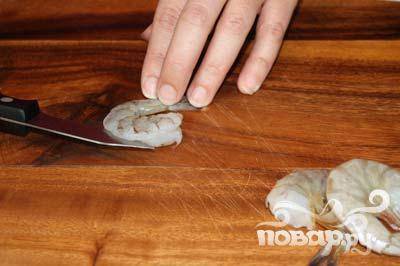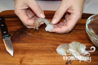 Почистить 500 г креветок.