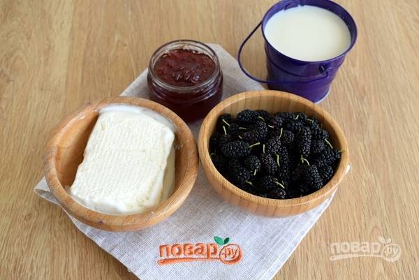 Шелковицу промойте водой, удалите мелкий сор, порченую ягоду. Отрежьте хвостики.