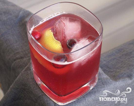 4. Все составляющие коктейля смешивают в шейкере и выливают в стакан со льдом. После украшения кусочком цедры и клюквой шедевр можно подавать на стол.