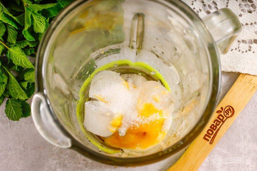 В чашу блендера всыпьте кубики льда, выложите мороженое любого сорта. Лучше всего использовать пломбир, но если мороженое будет фруктовое или ягодное — оно выгодно нивелирует вкус алкоголя!