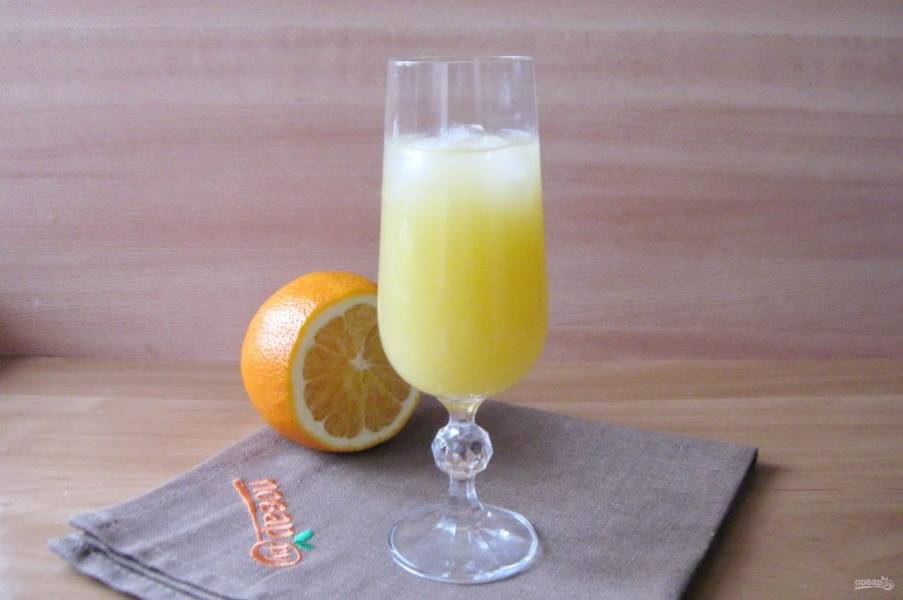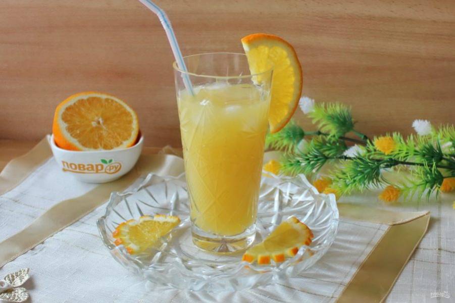 Добавьте апельсиновый сок и перемешайте с водкой.