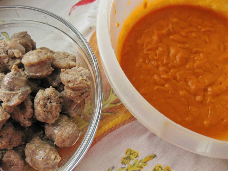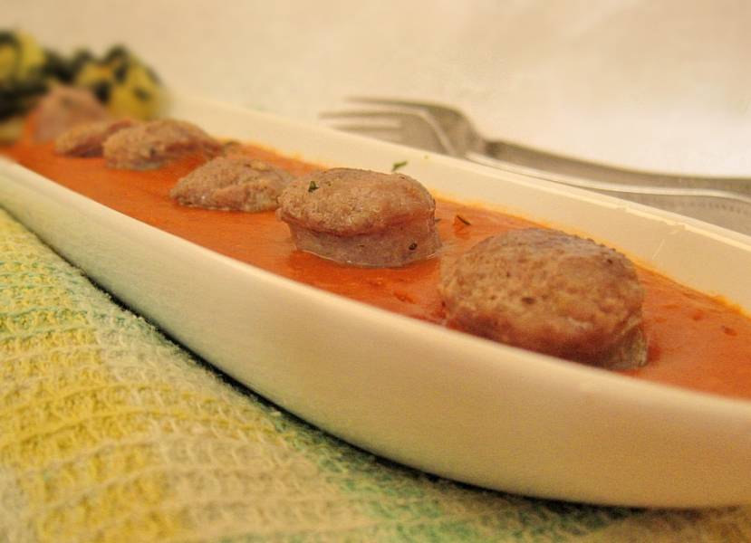 Колбаски с томатным соусом и картофелем