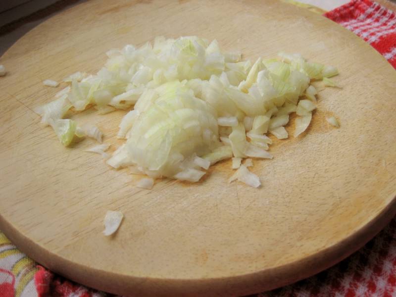 Почистить лук и мелко нарезать.