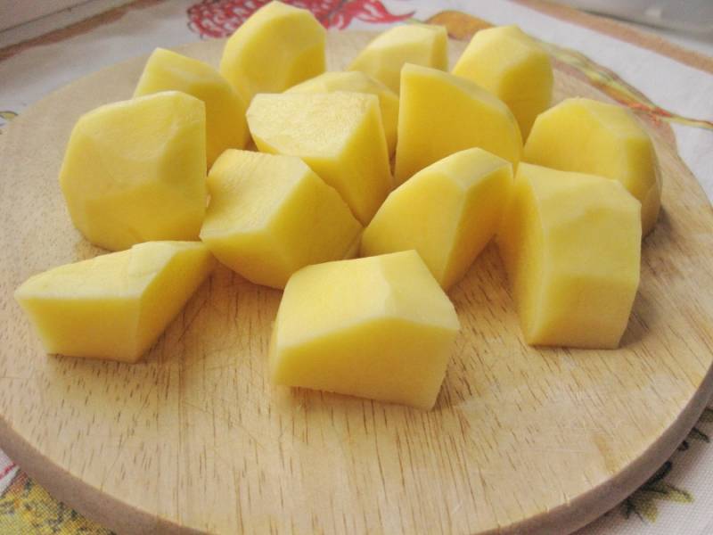 Картофель почистить и разрезать на 4 части. Варить в подсоленной воде в течение 15-20 минут до готовности.