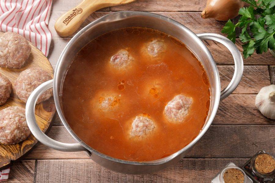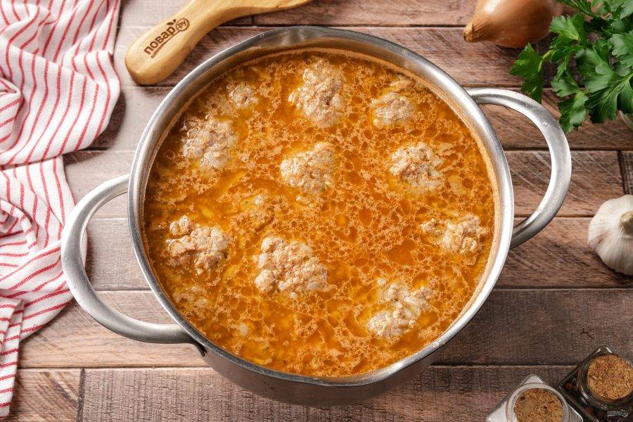 После закипания бульона погрузите в него подготовленные мясные шарики.