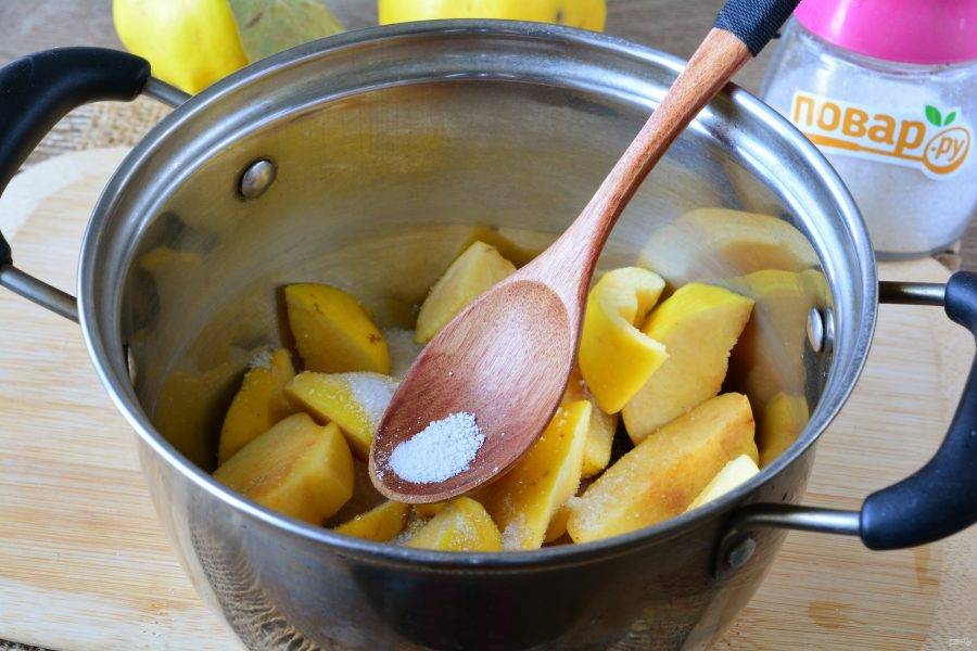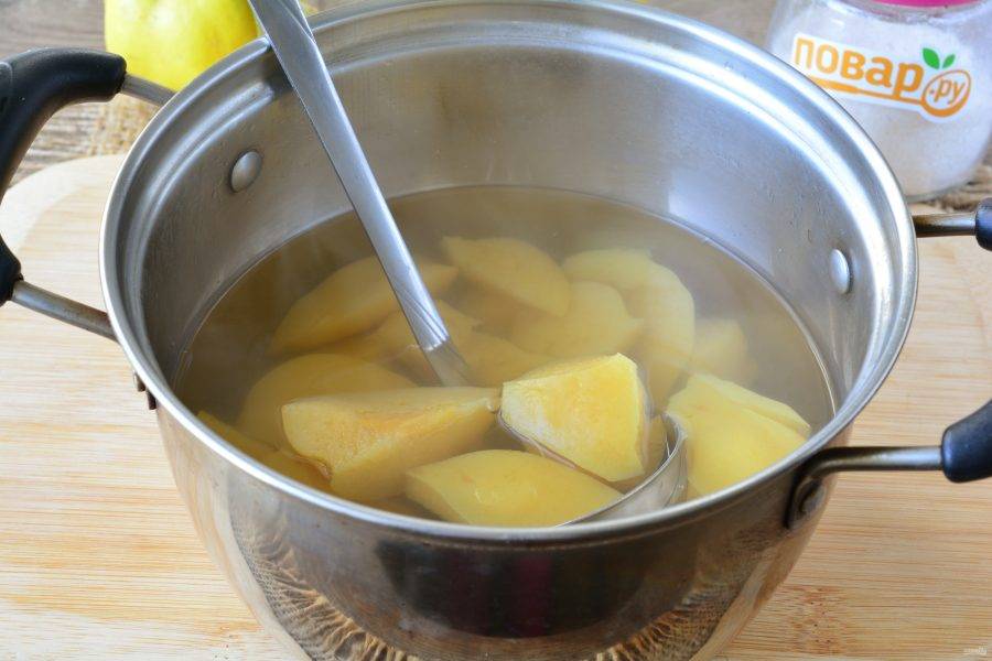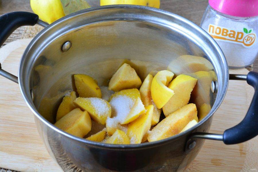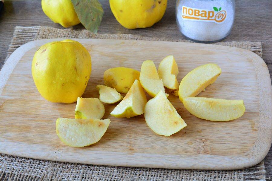 Айву хорошо промойте, удаляя налет. Плоды нарежьте дольками.