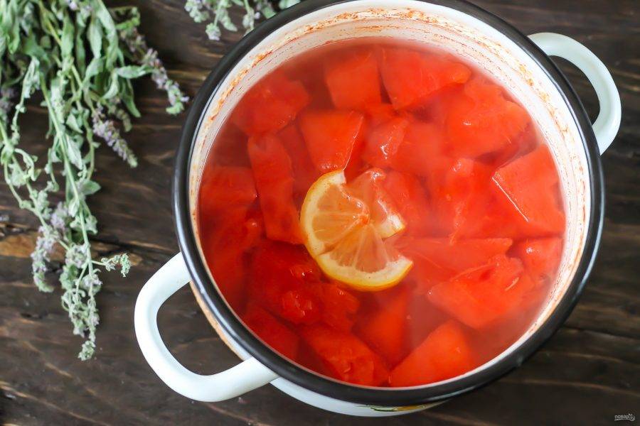 Ароматный компот из арбуза на зиму можно приготовить за 25 минут в домашних условиях. Напиток слегка изменяет вкус мякоти плода, но остается сочным и вкусным. Попробуйте!