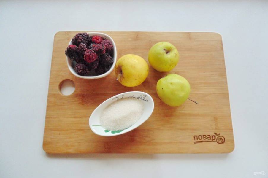 Ежевику помойте и добавьте к яблокам. Мороженую не размораживайте.