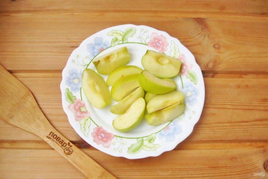 Из яблок удалите сердцевину. Нарежьте их дольками.