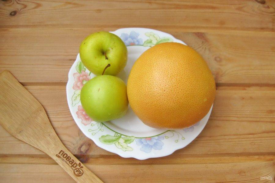 Яблоки и грейпфрут вымойте.