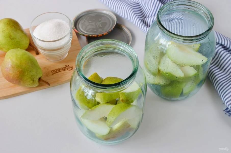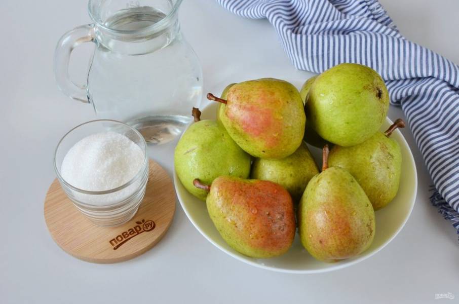 Подготовьте груши, сахар, воду, стерильные банки и крышки. Приступим!