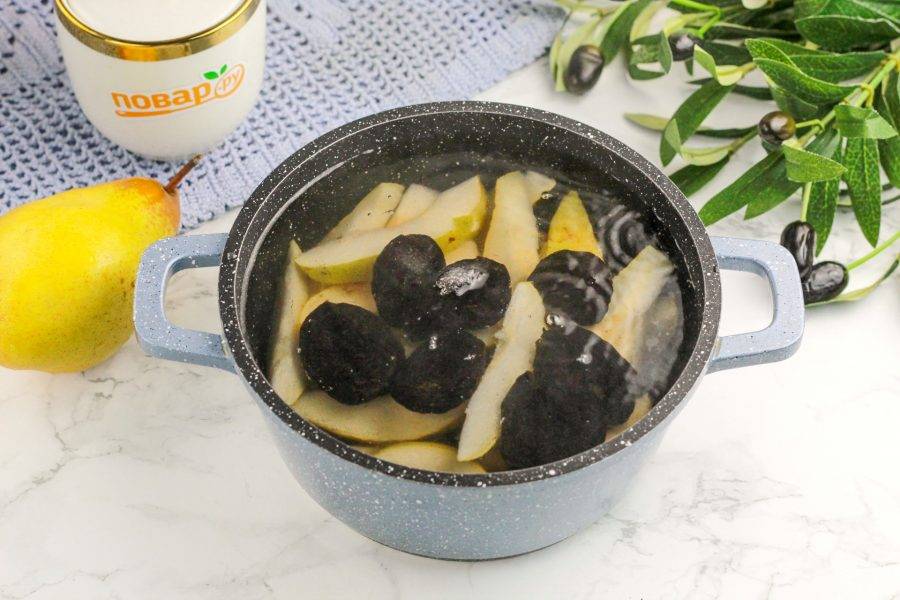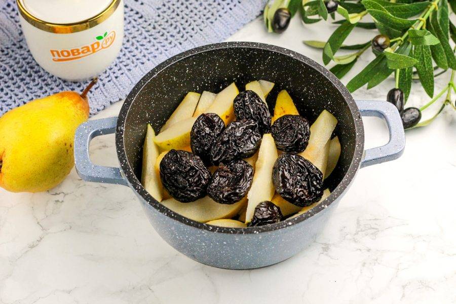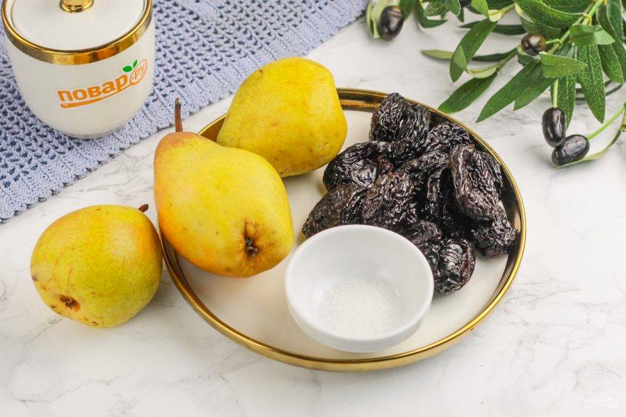Подготовьте указанные продукты. Груши можно использовать любого сорта, а чернослив — лучше без косточек.