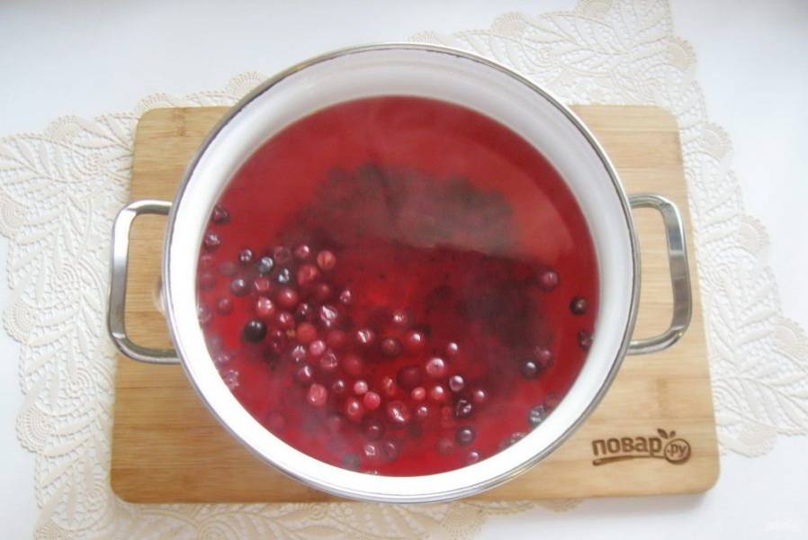Поставьте кастрюлю с ягодами и водой на плиту. Доведите до кипения и варите 15-20 минут.
