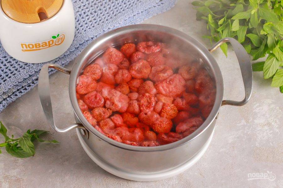 Ароматный компот из клубники можно заготовить на зиму и без добавления сахара. Вам понадобится всего лишь два ингредиента: ягоды и вода. Но помните, что клубника должна быть спелой и сладкой.