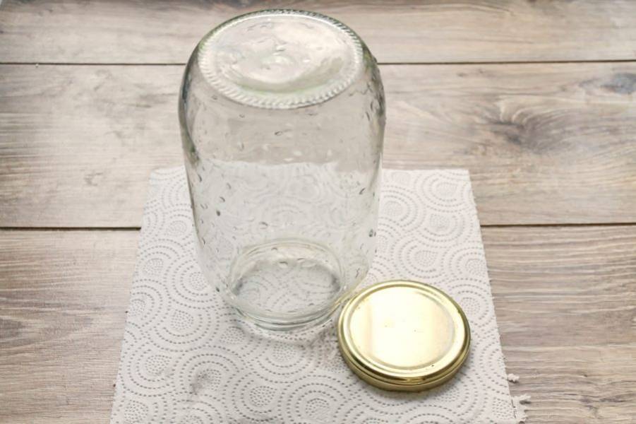 Банку тщательно вымойте с пищевой содой и простерилизуйте любым удобным способом. Крышку прокипятите в течение 5 минут на среднем огне.