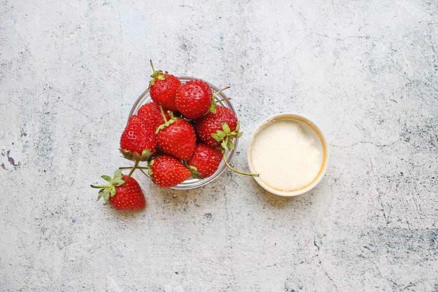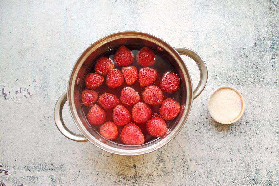 Подготовьте все необходимые ингредиенты для приготовления компота из клубники "Виктория".