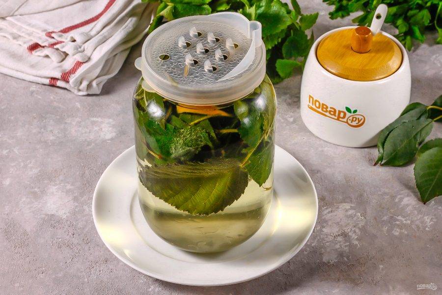 Подготовьте указанные ингредиенты. Можно использовать листья малины, смородины, клубники.