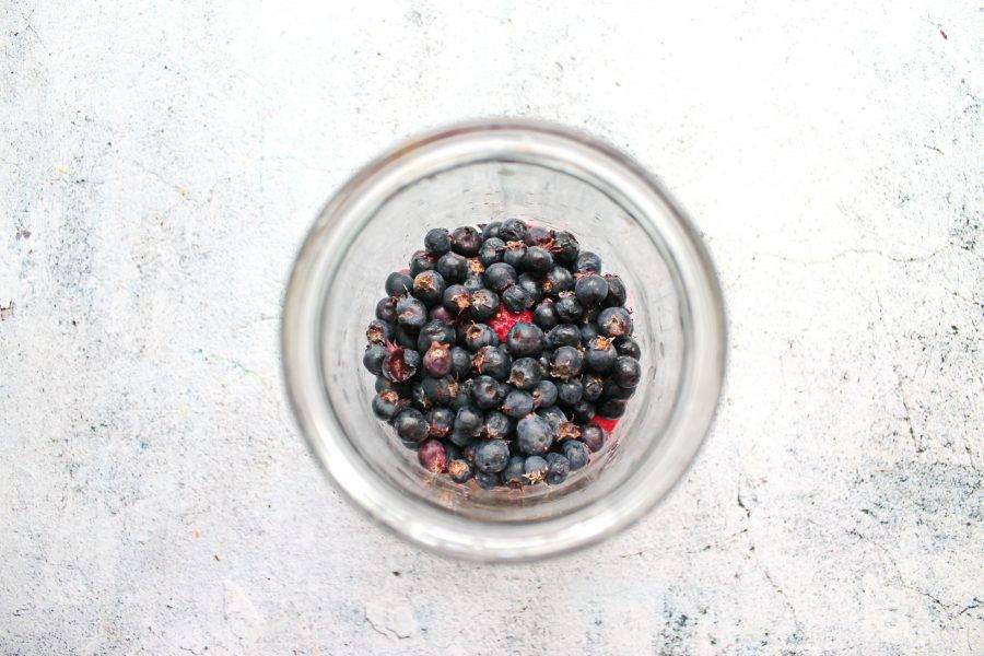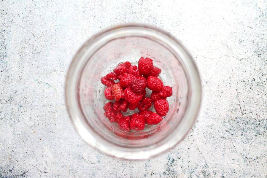 Подготовьте все необходимые ингредиенты для приготовления компота из ирги и малины на зиму. Ягоды переберите, сполосните и дайте воде стечь. Удалите у них веточки. Банки стерилизуйте любым удобным способом.
