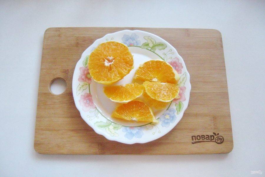 Апельсин помойте, очистите от кожуры и удалите косточки. Мне попался апельсин без косточек.