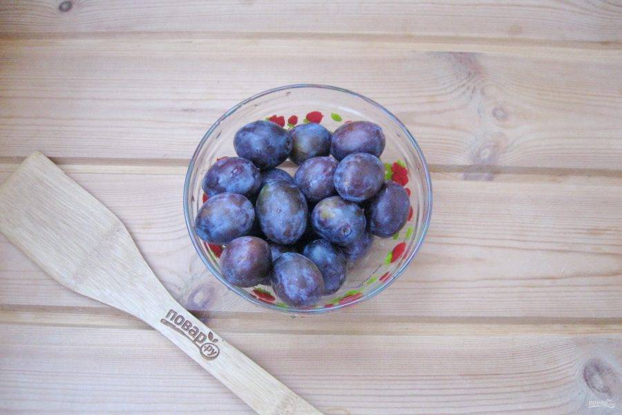 Сливы тщательно промойте. Берите целые, не поврежденные плоды.