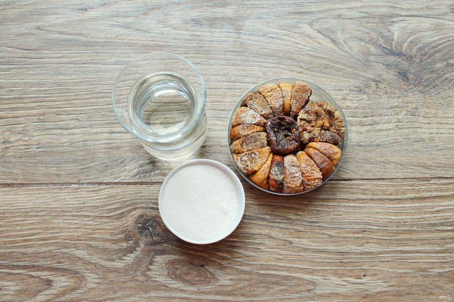 Подготовьте все необходимые ингредиенты для приготовления компота из сушеного инжира.