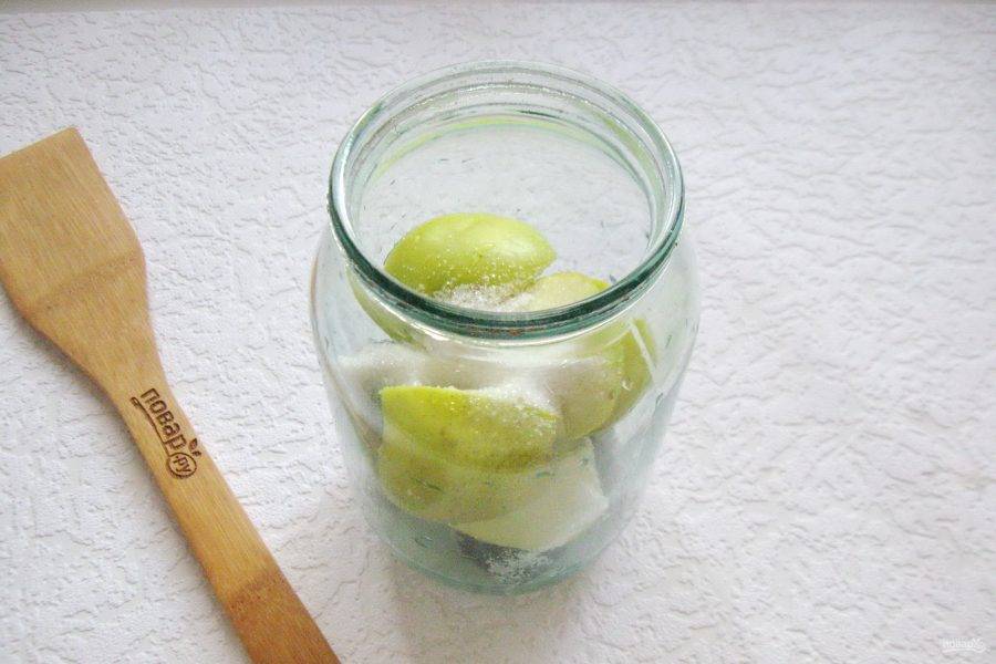 Пока закипает вода, добавьте в банку сахар и лимонную кислоту.