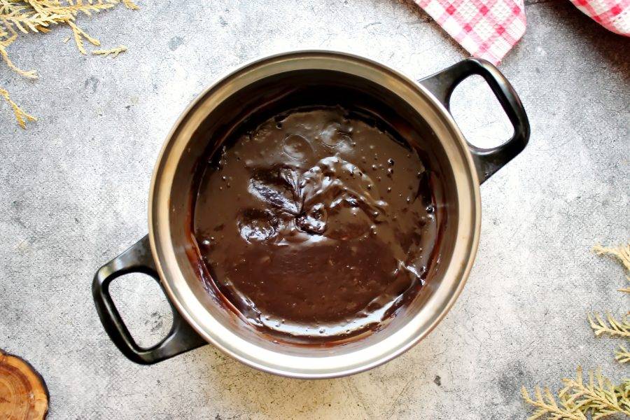 Поставьте кастрюлю на минимальный огонь и, постоянно мешая, варите в течение 8-10 минут после первых бульков. Массу остудите и уберите в холодильник на два часа для стабилизации.