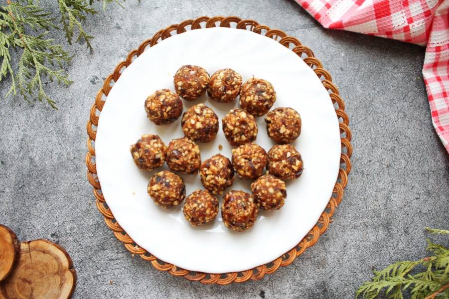 Сформируйте круглые конфеты размером с орех макадамия. Положите в холодильник на 15 минут.