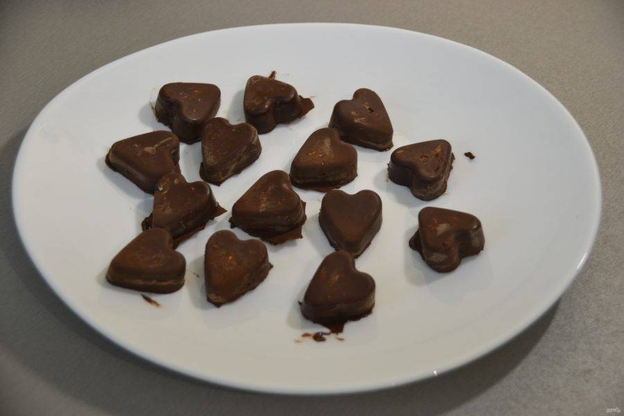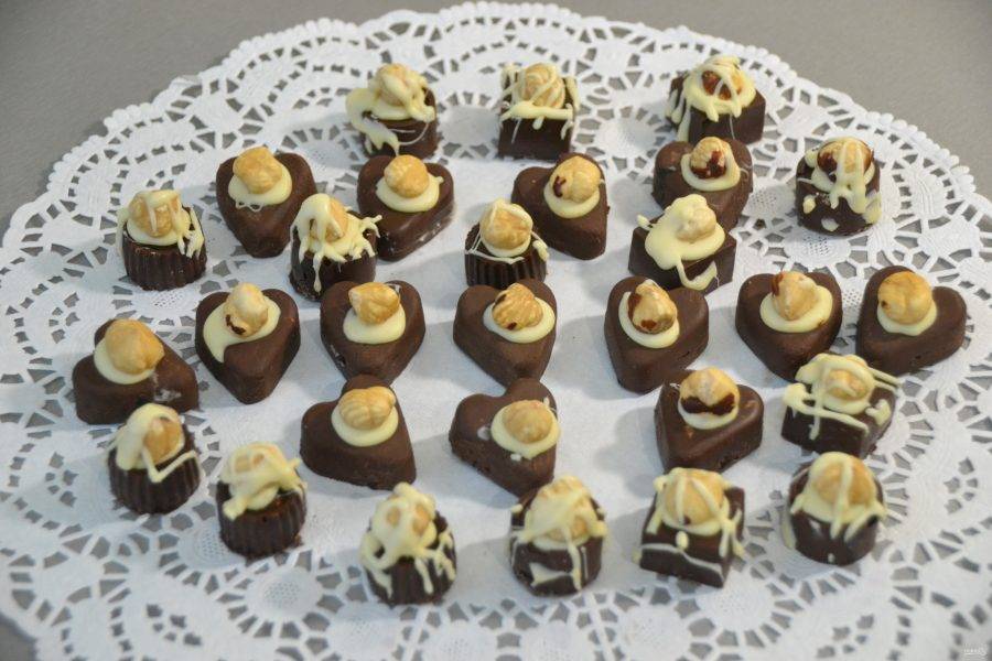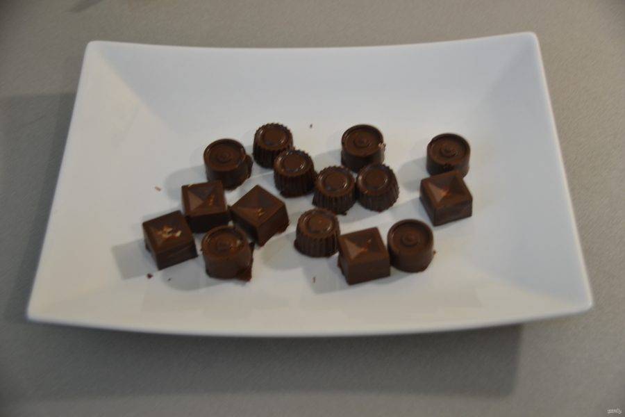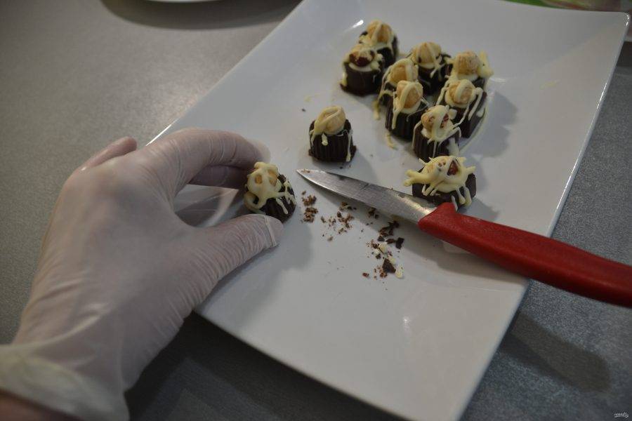 После того, как конфеты окончательно застынут, наведите последний лоск, острым ножом обрежьте все наплывы и излишки шоколада