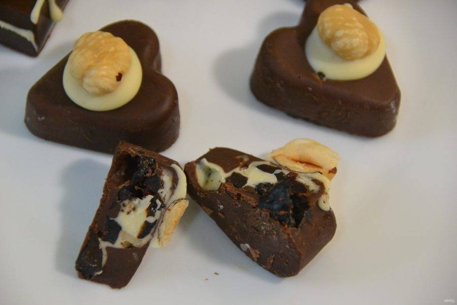 Используйте качественный шоколад с высоким содержанием какао. Начинка может быть самая разная – любые орехи, фрукты, цукаты, марципан.Похожие рецепты
