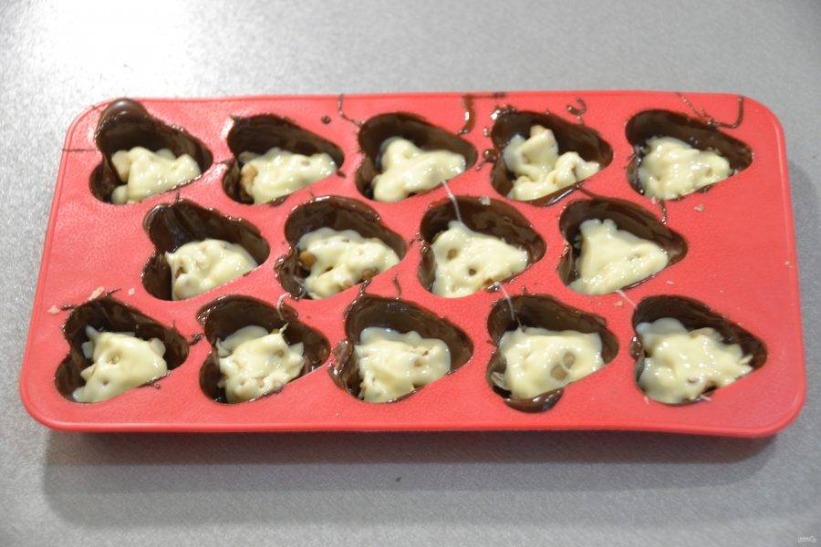 Выровняйте финальный слой шоколада шпателем, отправьте в морозилку минут на 10-15 для застывания.