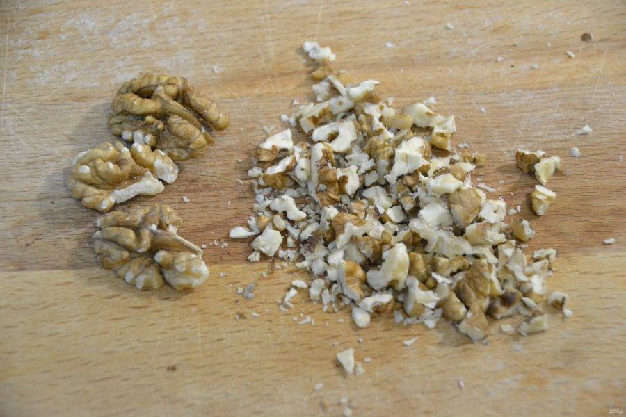 Когда глазурь готова, насыпьте немного дробленого грецкого ореха.