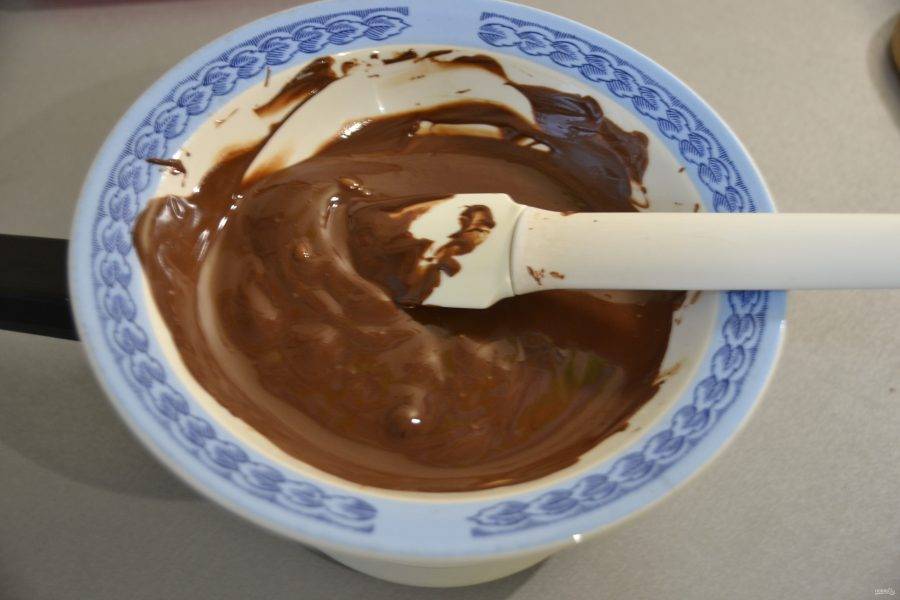 Подготовьте водяную баню для растапливания шоколада, измельчите шоколад, следите за тем, чтобы вода не доставала до дна миски с шоколадом.