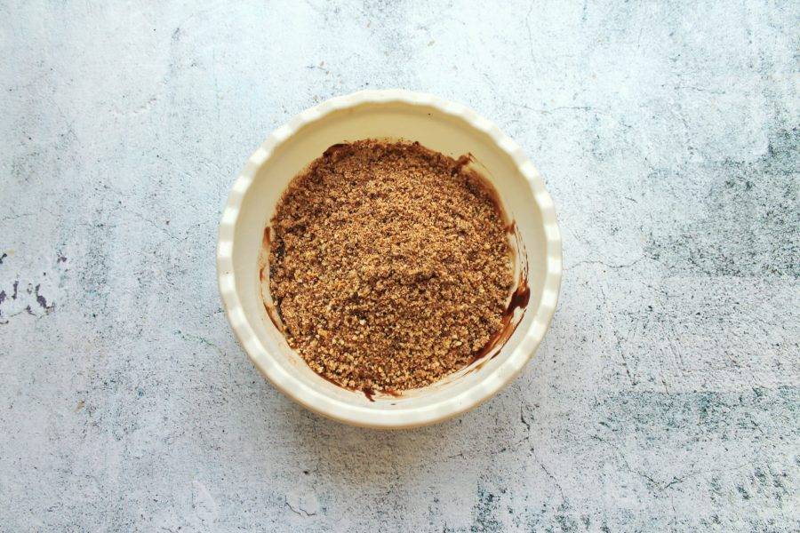 Фундук измельчите в крошку, добавьте в шоколадную массу.