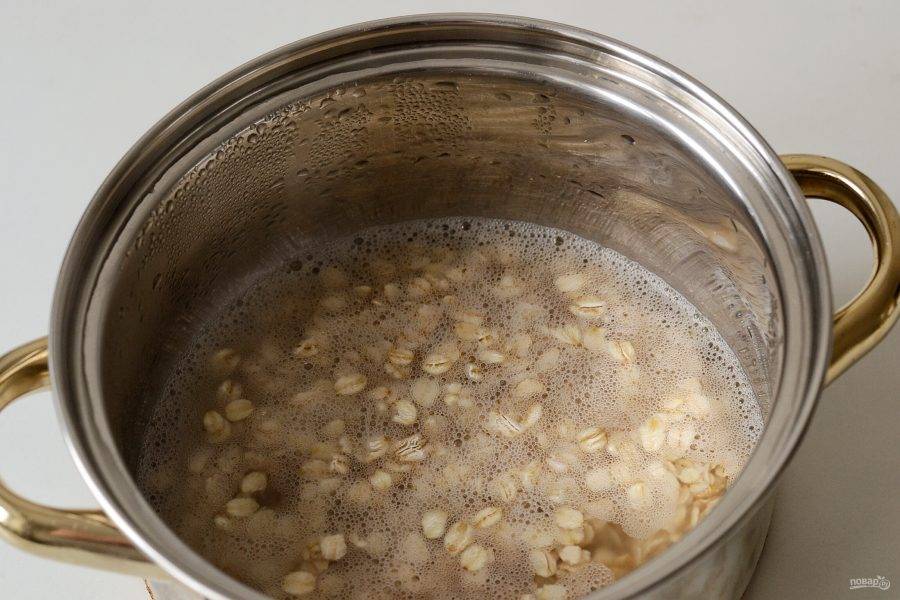 Вскипятите воду с щепоткой соли, добавьте овсяные хлопья. Перемешайте.