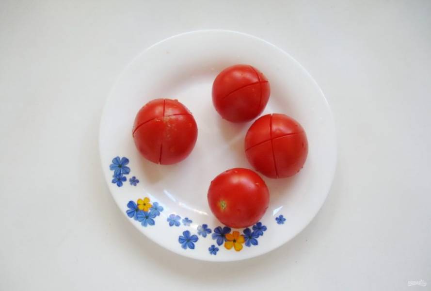 На каждом помидоре сделайте крестообразный надрез.