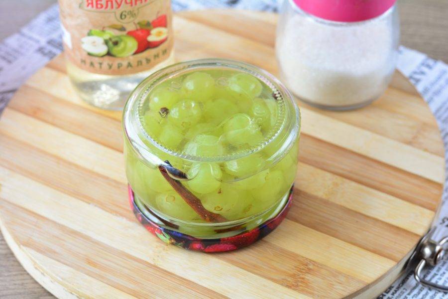 Залейте виноград горячим маринадом.