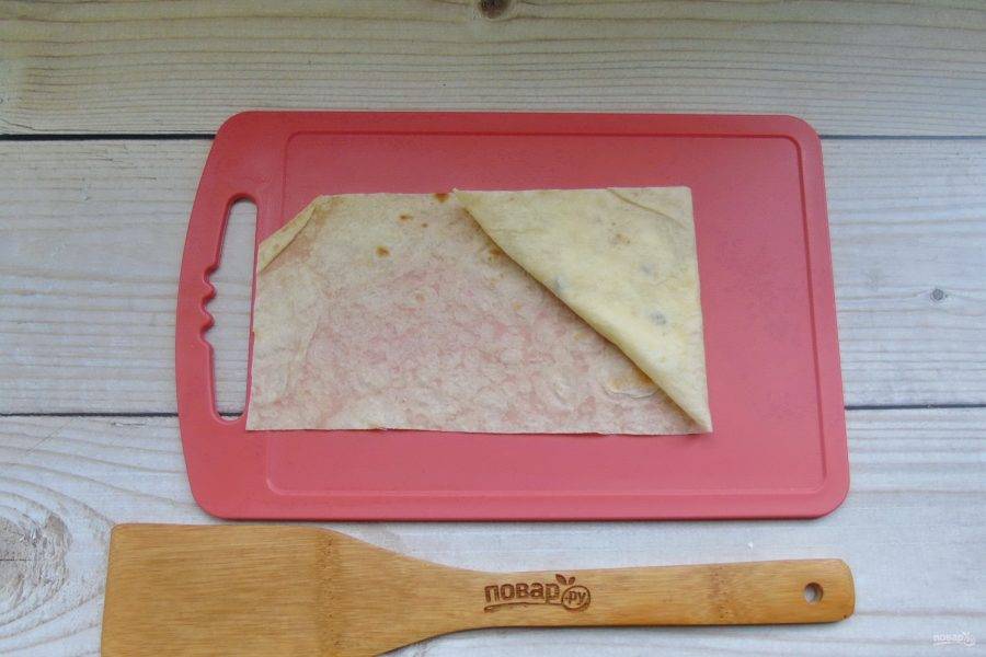 И так до конца, пока не закончится полоска лаваша. Конвертик готов.