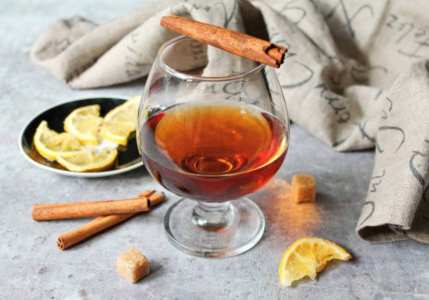 В чистую сухую банку, или просто в бутылку с коньяком опустите палочку корицы. При желании добавьте коричневый сахар, все перемешайте и оставьте на две недели. После этого извлеките корицу, охладите и подавайте.