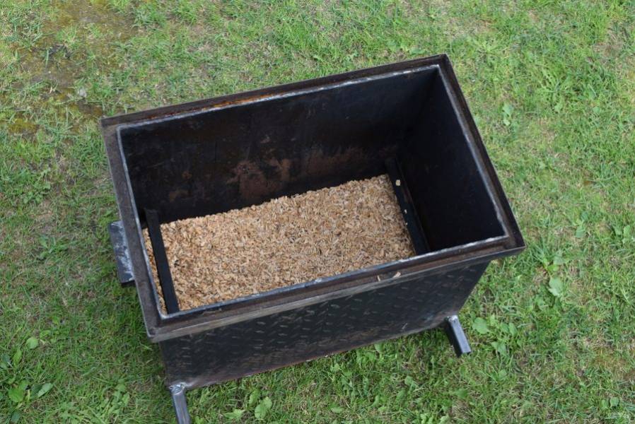 На дно коптильни насыпьте ольховые опилки (можно другие на ваш вкус).